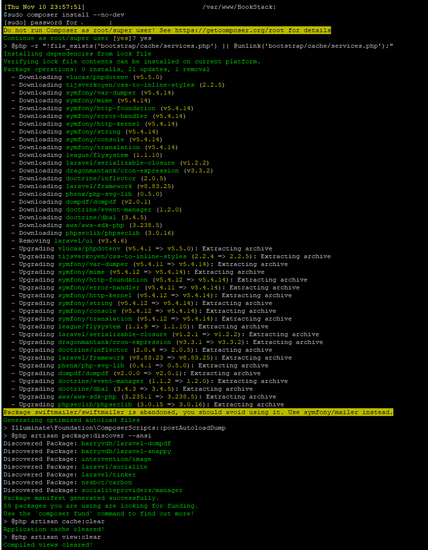 sudo composer install --no-dev